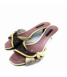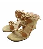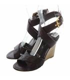 サンダル レザー オープントゥ ウェッジソール モノグラム 型押し 34 21.5cm 紫 パープル /XZ ■GY1