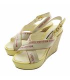 サンダル エナメル エスパドリーユ オープントゥ ウェッジソール ロゴストラップ 34.5 22cm 黄色 イエロー ベージュ /XZ ■GY17