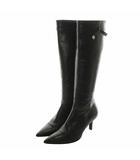 ロングブーツ レザー ポインテッドトゥ ヒール サイドジップ リボン ロゴ 34.5 22cm 黒 ブラック /XZ ■GY17