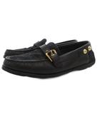 ベルトストラップ付 モノグラム ドライビングシューズ ローファー レザー キャンバス 36.5 黒 ブラック /GV ■GY62