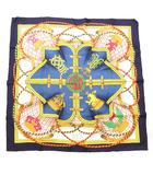 カレ90 GRANDE TENUE 馬の礼装 スカーフ 絹 シルク 総柄 紺 ネイビー /JS ■GY03