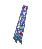 Carre en Boucles スカーフ リボンスカーフ 絹 シルク バックル柄 ロゴ 総柄 青 ブルー /XZ ■OH ■GY19