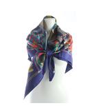 カレ90 スカーフ シルク 総柄 紺 マルチカラー /MI ■OS ■OH