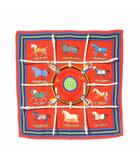 カレ90 Couvertures et tenues de jour馬着 スカーフ 赤 レッド 青 黄色 馬柄 シルク /RI ■OS