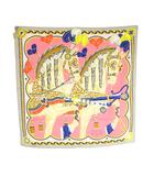 美品 カレ90 Raconte moi le cheval お馬のお話をして プリーツスカーフ 絹 シルク イエロー オレンジ /UO ■GY44
