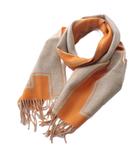 25AW クレ・ドゥ・H プティットカスク カシミヤ マフラー フリンジ ベージュ・シネ × オレンジ /YO35 ■OH