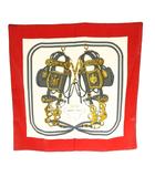 カレ90 GRAND APPARAT 盛装の馬 スカーフ 大判 絹 シルク 総柄 ロゴ 赤 レッド ベージュ 白 ホワイト /XZ ■OH ■GY18