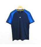 Tシャツ カットソー 半袖 ライン ロゴ L ネイビー×ブルー スポーツウェア ※EKM