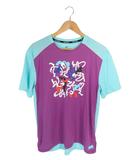 ランニング RUNNING プルオーバー Tシャツ スポーツ 半袖 プリント メッシュ地 パープル 水色 サイズL 国内正規 QQQ