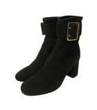 ショートブーツ シューズ ヒール サイドベルト スエード 36 23.0cm 黒 ブラック 0122 ■MNK4