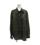 シャツ ブラウス ボウタイ チェック バンドカラー 絹 シルク 48 緑 グリーン /FF ■GY61
