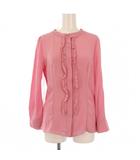 シャツ ブラウス バンドカラー 長袖 フリル ワンカラー シルク 38 ピンク /BB