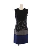 ワンピース ひざ丈 ノースリーブ タイト 柄 ウール シルク 36 黒 ネイビー /BM ■BM