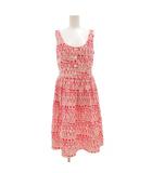 ワンピース ノースリーブ ギャザー ひざ丈 総柄 ストレッチ 40 赤 レッド 白 ホワイト /GV ■GY18